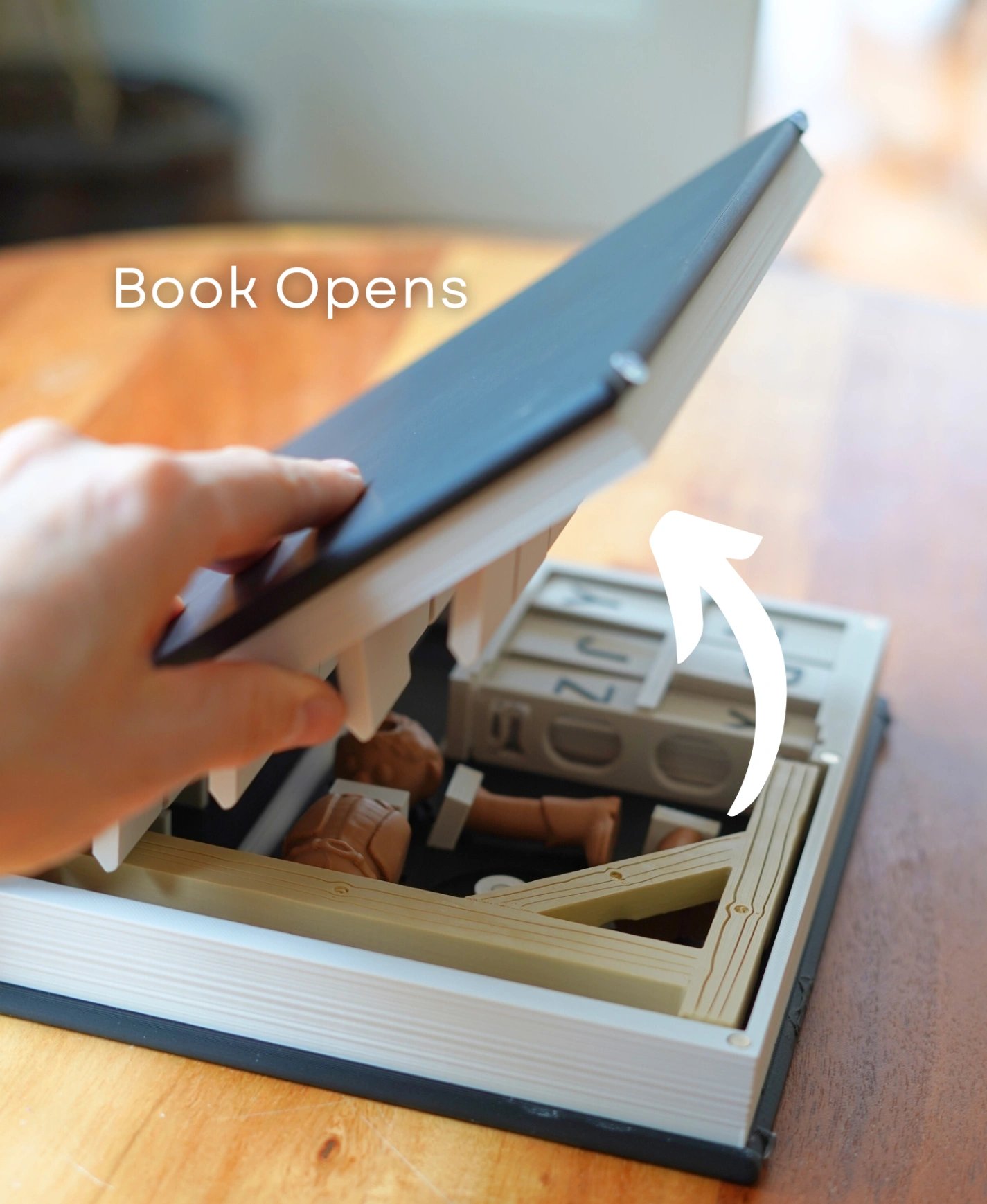 This design blends in on your bookshelf or table. But when you're ready to play, turn the page, open the book, and you're playing hangman.